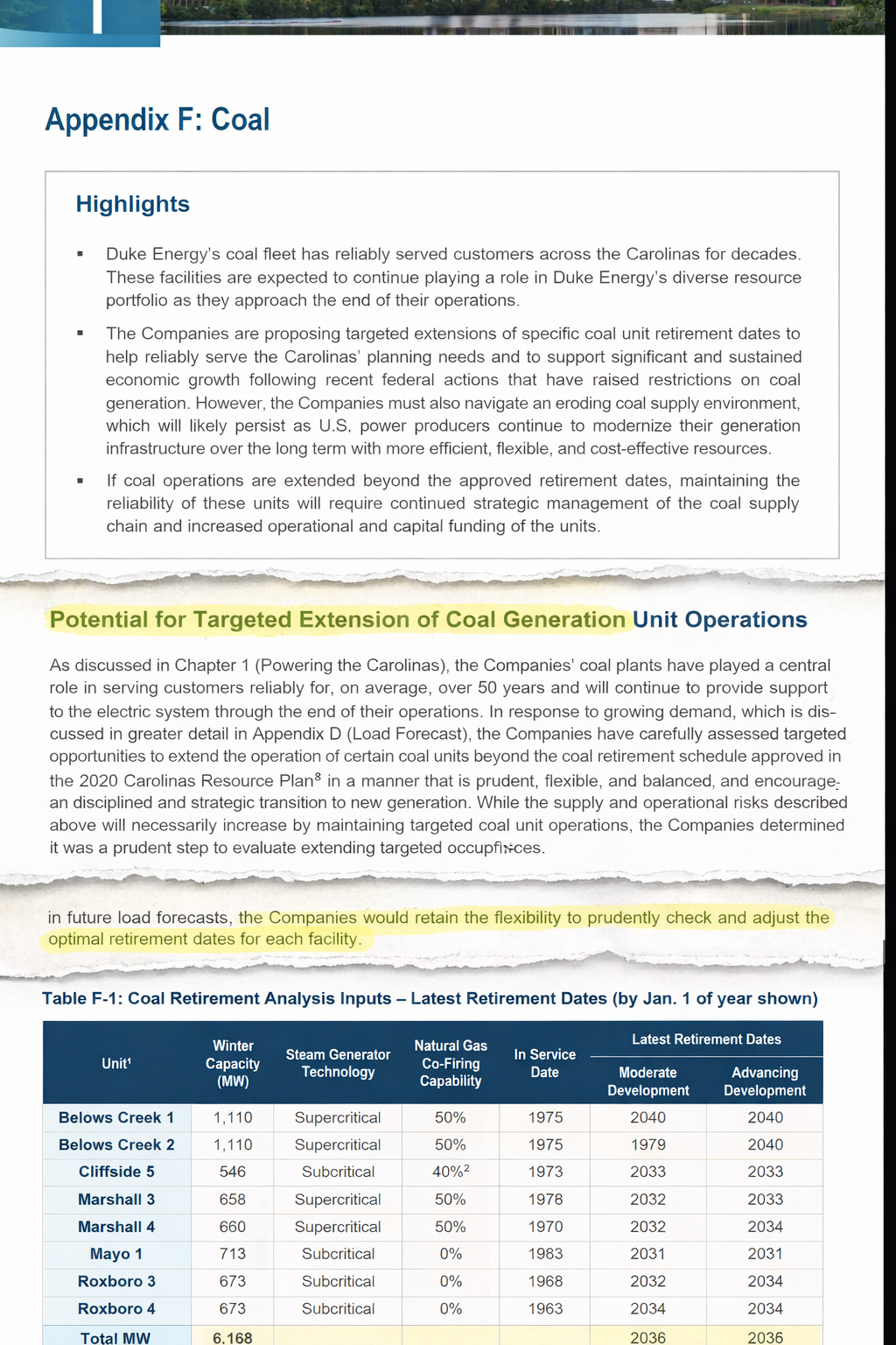 Another concern centers around coal plants. When Duke came to our meeting, I directly asked if they had plans to defer the retirement of coal plants to help meeting the surging demand. They said no.